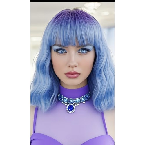 NIEUW: Kinky Curly Cosplay pruik halflang, in paars/lichtblauw